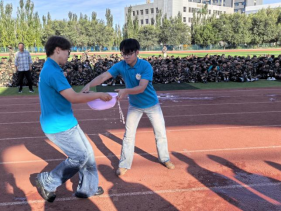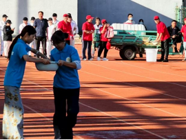 比赛哨声响起,现场气氛瞬间紧张起来。经济管理系的队员们迅速进入状态,第一棒队员稳稳端起水盆,全力冲向接力区。交接过程中,他们配合默契,动作干净利落,尽量减少水的泼洒。每一棒的传递都凝聚着全队的专注与信任,每一步的奔跑都承载着为集体争光的信念。尽管赛道湿滑、水盆沉重,但队员们始终咬牙坚持,以高度的纪律性和责任感完成每一次交接。当最后一棒队员将水盆中的水稳稳倒入终点水桶并高高举手示意时,现场响起了热烈的掌声。他们不仅完成了任务,更以出色的水量控制和整体用时,赢得了裁判组的认可,最终斩获该项目的三等奖。