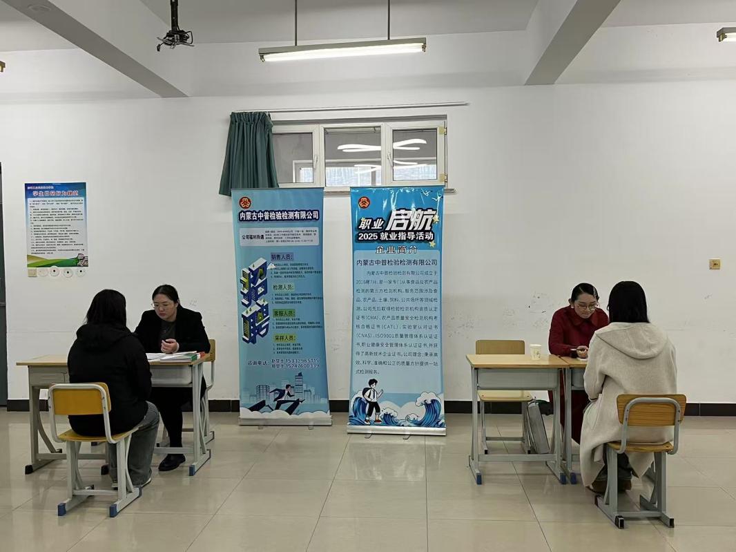 第三天是“企业进校园”模拟面试与交流活动。内蒙古中普检测检验有限公司、赤峰制药股份有限公司、赤峰老百姓大药房三家本地优质企业的人力资源负责人和部门主管亲临现场,为学生提供高度仿真的模拟面试体验,并即时给予个性化反馈。活动现场还设立了企业展示区,方便学生与企业代表深入交流,直观了解行业动态与招聘需求,搭建了双向沟通的桥梁。