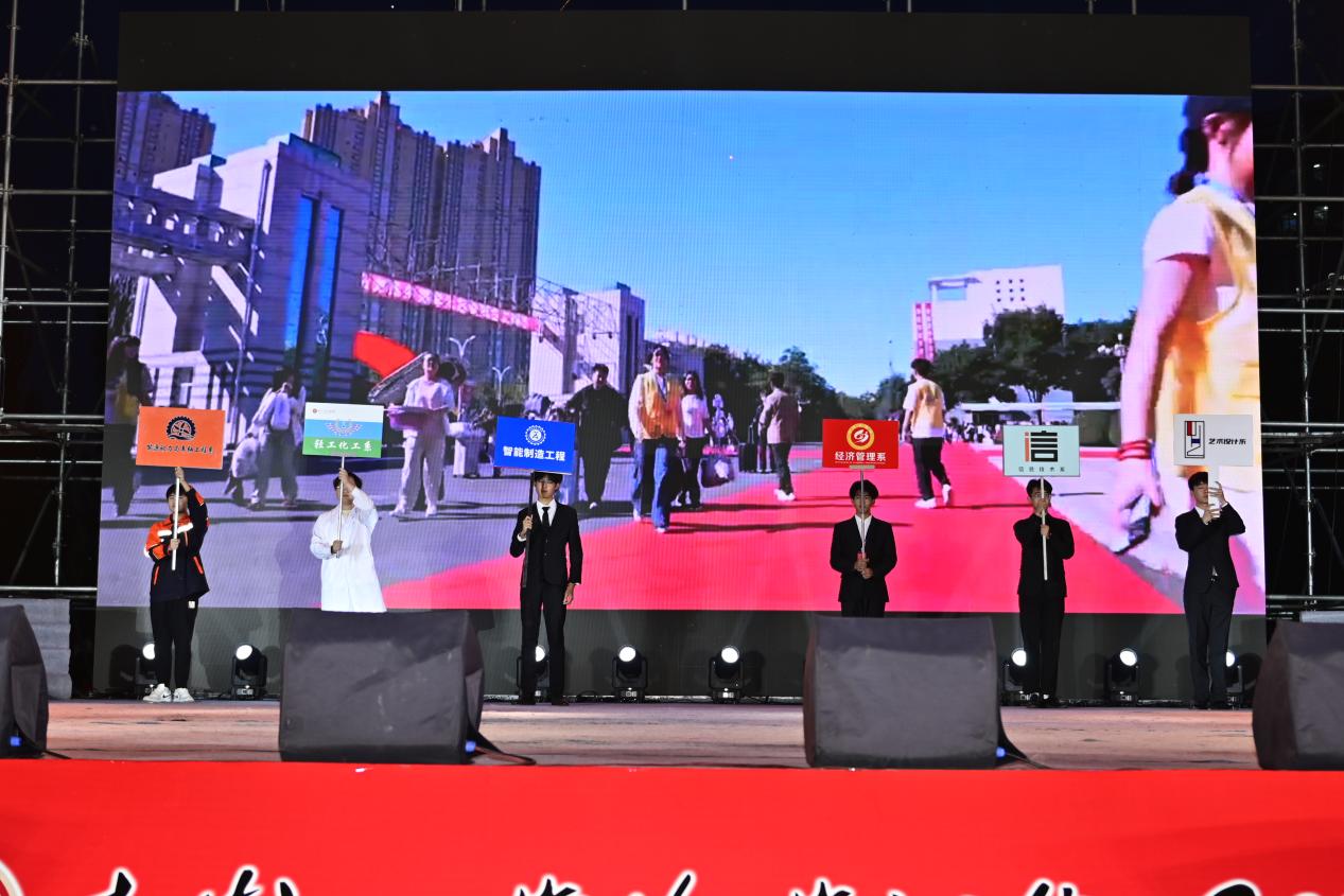杨阳、冯哲两位老师联合各系优秀学子的群诵《向阳而生》将整场晚会推向高潮。“平安校园铸就的盾,秩序校园淬炼的钢,卫生校园擦拭的镜,健康校园跃动的光,修身校园打磨的玉,求知校园沸腾的矿……”一声声坚定的话语感染全场,凝聚起全体工院人逐梦力量与坚定信念。